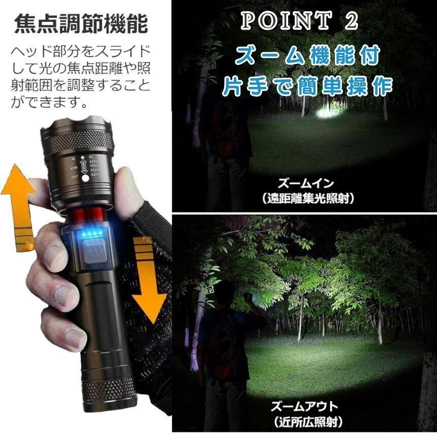 懐中電灯 ハンディライト led ライト ズーム 最強 防水 ハンディ 高輝度 USB TYPE-C 充電式 ハンドライト 作業 防水 小型 持ち運び 軽量