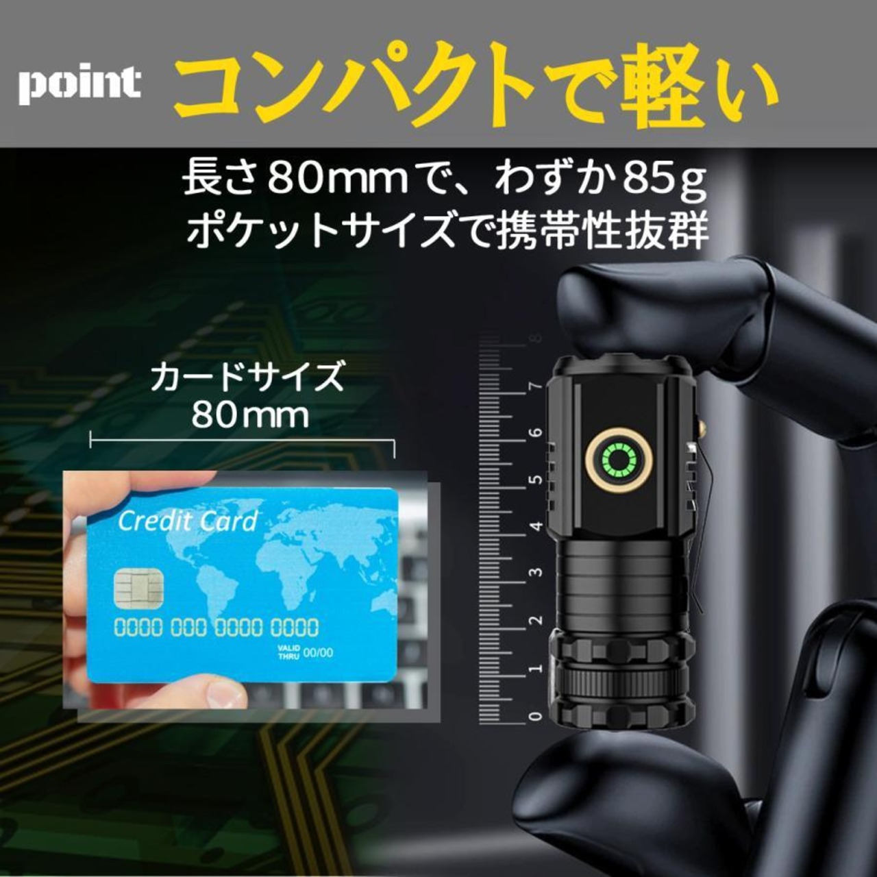 さらに5つの点灯モードも搭載。様々なシーンに対応し、頼れる相棒として活躍します。しかも、アルミ合金製で頑丈。どんな環境でも安心してお使いいただけます。