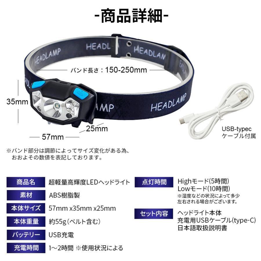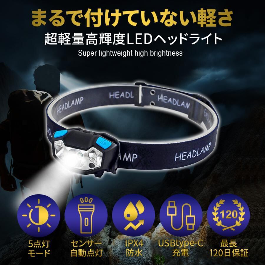 商品名:ledヘッドライト 充電式 ヘッドランプ 最強 ルーメン 超強力 防水 登山 釣り センサー機能 軽量