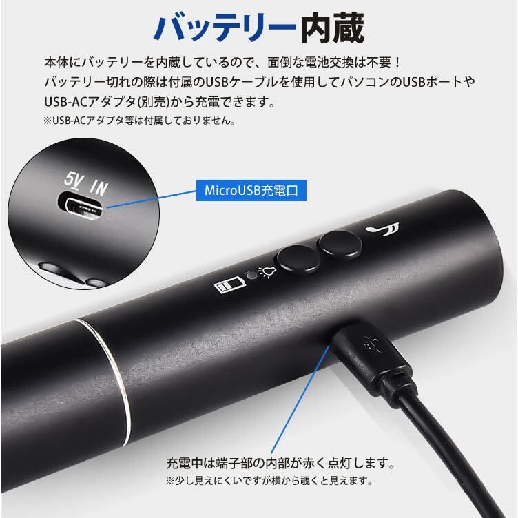 本体にバッテリーを内蔵しているので、面倒な電池交換は不要!