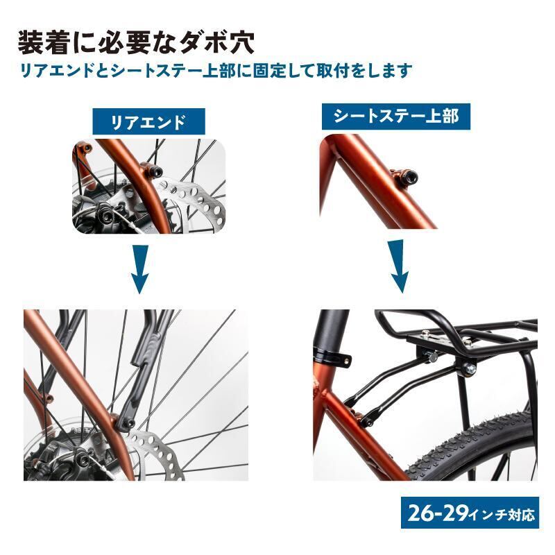 自転車荷台、自転車用リアキャリアを装着して荷物を沢山自転車に積載できる!