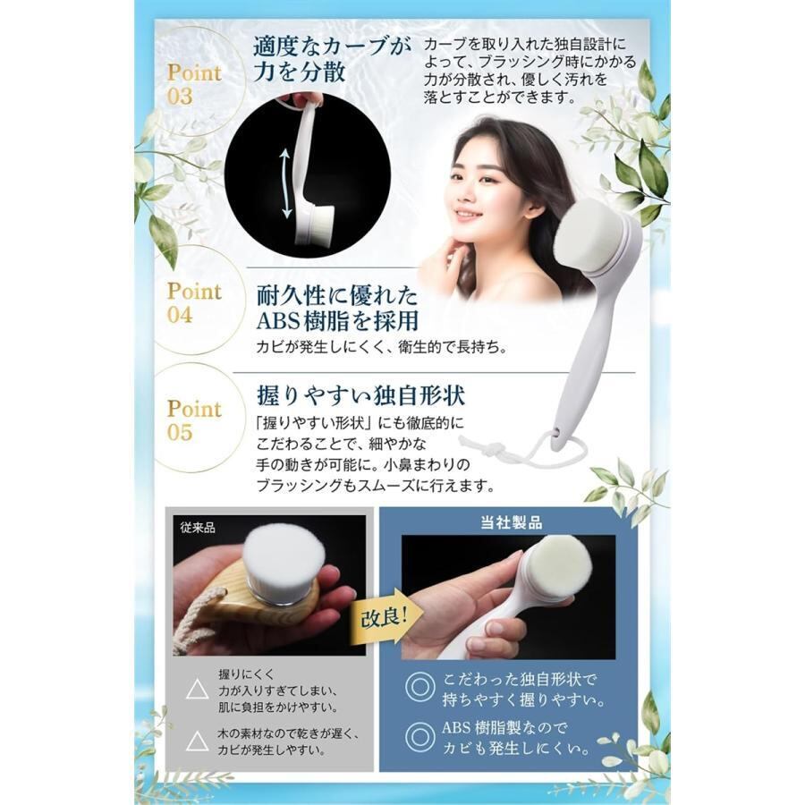 「平らな極細毛で効率よく毛穴洗浄」平らな極細毛の小鼻ブラシで毛穴の黒ずみにまんべんなくアプローチ。