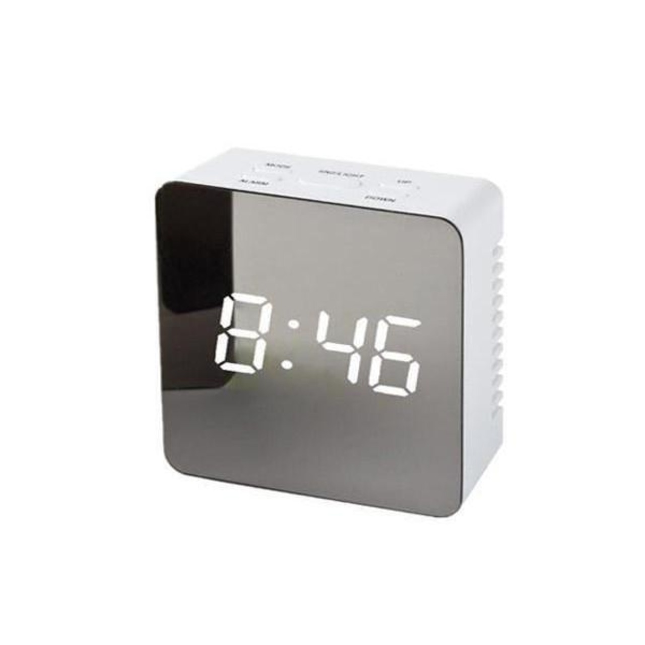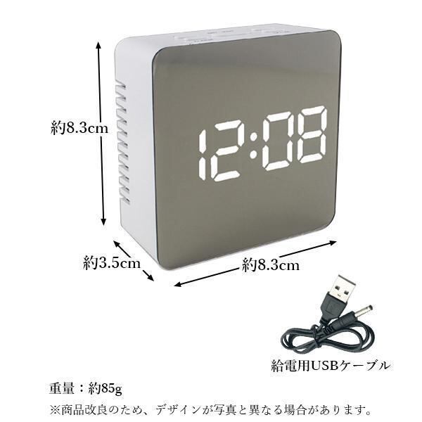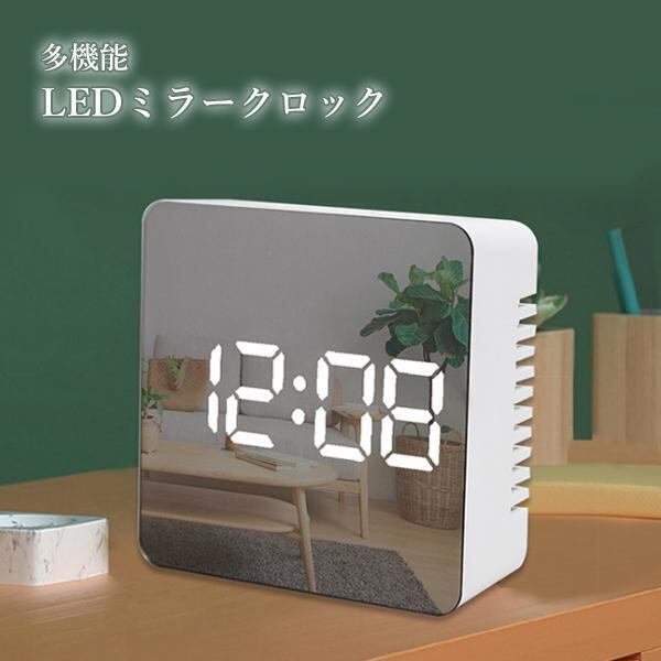 LEDミラークロック 多機能 置き時計 アラーム 温度計 ナイトモード搭載 LEDデジタル表示 インテリア バックライト 光る 鏡