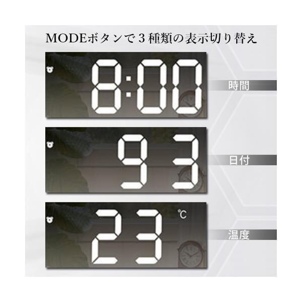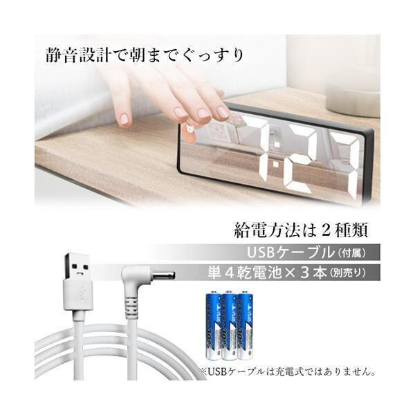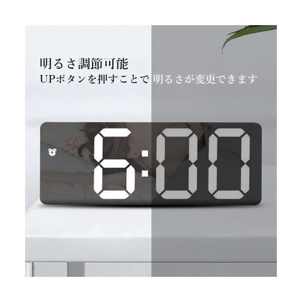 目覚まし時計 置き時計 デジタル LEDライト 静音設計 おしゃれ かわいい 子供 ブラック 長方形