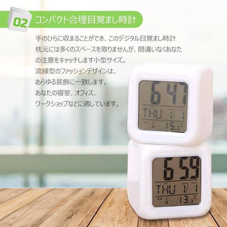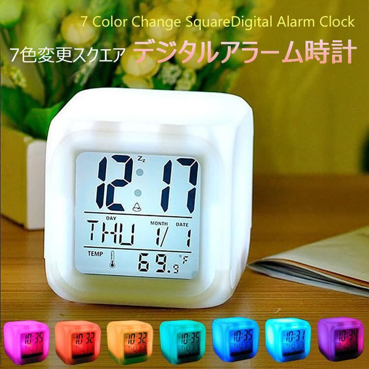 商品名: 7色スクエアデジタル目覚まし時計