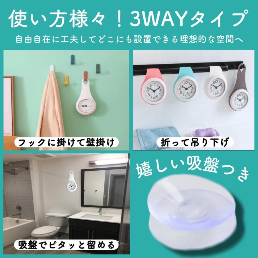 お風呂などの水回りでも安心のバスクロック