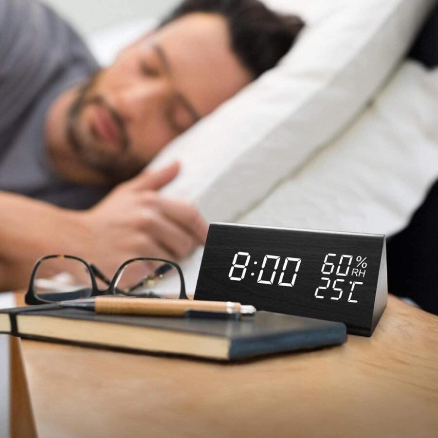 大きなLEDディスプレイを搭載しており、時間が見やすいです。毎日18時〜翌朝7時まではLEDディスプレイ画面の明るさが自動的に半減します。夜寝るときも目に優しいです。また明るさを手動で3段階調節することもできます。省エネモードを搭載しており、省エネモード中は一定時間でLEDディスプレイが消灯。60db以上の音を検知すると自動で点灯します。