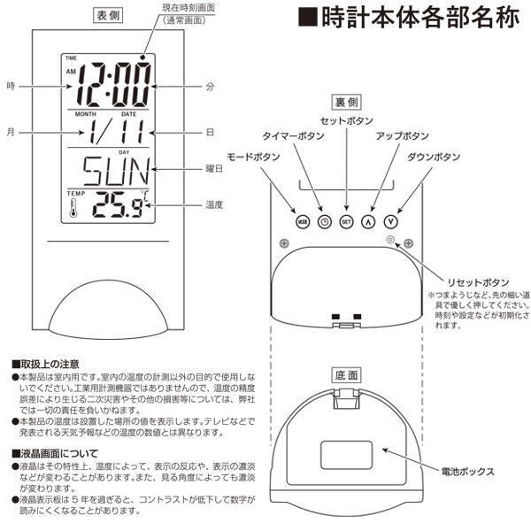 機能 時刻・日付表示・アラーム・タイマー・温度計