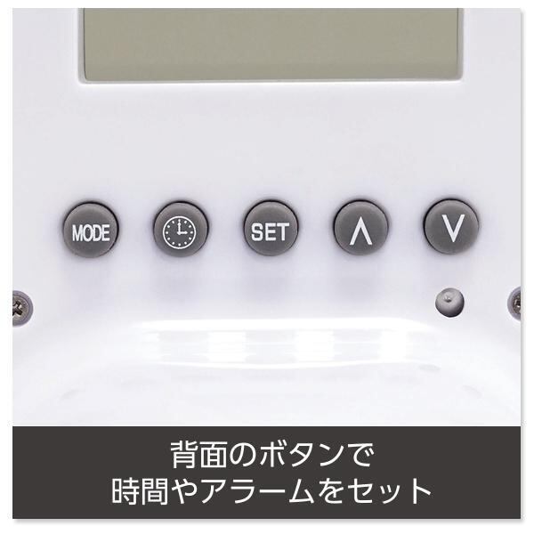 背面のボタンで時間やアラームをセットなど簡単設定。