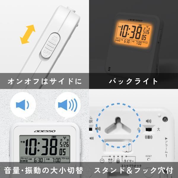 振動目覚ましだけでなく、普段の電波時計としても使えます