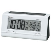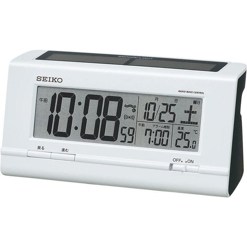 セイコー クロック 目覚まし時計 ハイブリッドソーラー 電波 デジタル カレンダー 温度 表示 白 パール SQ766W SEIKO