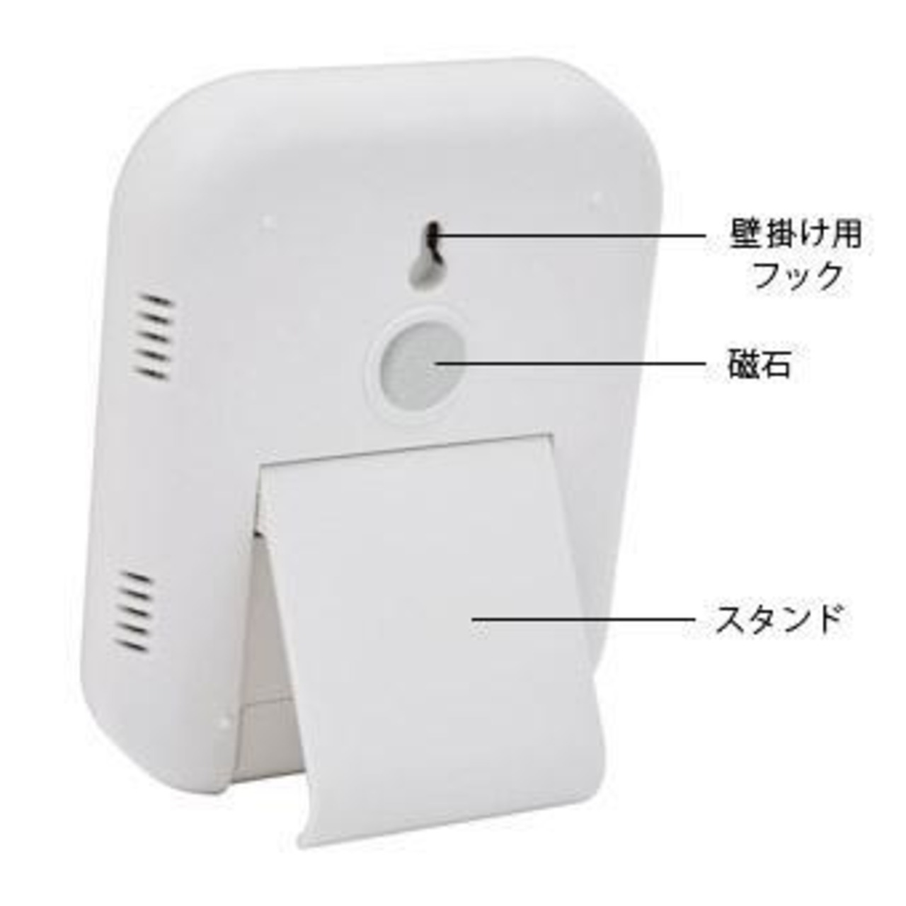 机に置いたり、壁に掛けたり、冷蔵庫にはったりなど温湿度が気になる場所に設置できます。