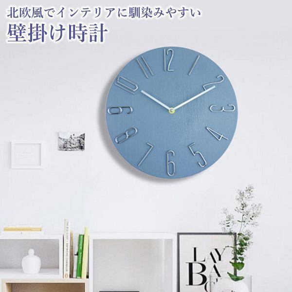 壁掛け時計 掛け時計 ネイビー 静音 アナログ 時計 木目調ダイヤル アンティーク 北欧 おしゃれ かわいい